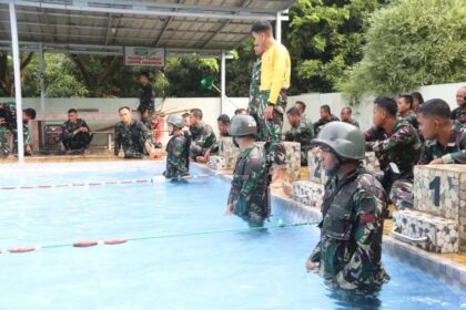 LCN – Banjar – Dalam rangka memelihara kesiapsiagaan dan profesionalisme prajurit, Yonif 323 Divisi Infanteri 1 Kostrad melaksanakan Latihan Renang Militer (Renmil) diwilayah Banjar, Senin (09/0...