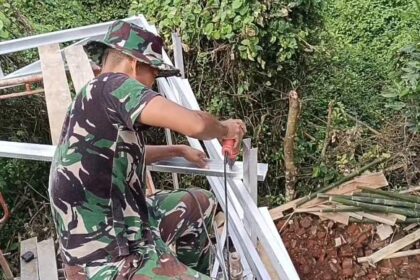 LCN – Pasuruan, – Satgas TNI Manunggal Membangun Desa (TMMD) Ke-127 dari Kodim 0819/Pasuruan terus mempercepat pembangunan musholla yang berlokasi di RT 02 RW 03 Dusun Kili Timur, Desa Won...