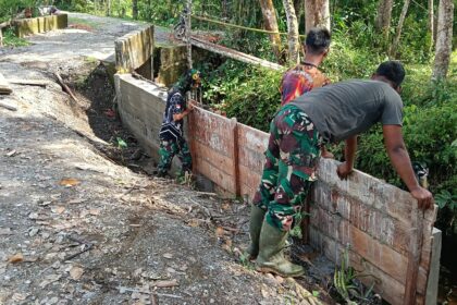 LCN – Aceh Barat – Kerja keras Personel Satgas TMMD Reguler ke-127 Kodim 0105/Abar bersama masyarakat akhirnya membuahkan hasil maksimal. Pengecoran wingwall sebagai bagian penting dari sa...