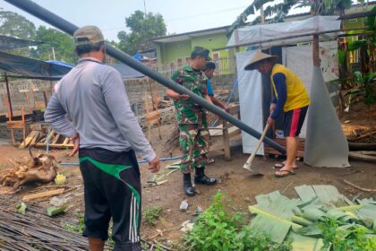 LCN – Blitar – Babinsa Kelurahan Turi Koramil 0808/01 Sukorejo, Serda Eko Budiantoro, menunjukkan kepeduliannya terhadap warga binaan dengan turut serta dalam kegiatan renovasi MCK milik B...