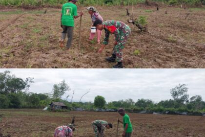 LCN – ACEH BARAT – Dalam upaya mendukung ketahanan pangan dan mempererat hubungan kemanunggalan TNI dengan rakyat, Babinsa Desa Pungki dari Koramil 03 Kaway XVI, Kodim 0105 Aceh Barat, Sertu Ari...