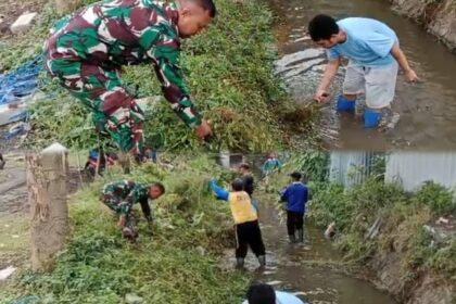 LCN – Blitar – Babinsa Desa Kedung Banteng Koramil 0808/17 Bakung Serka Imam Sungep, bersama warga masyarakat melaksanakan kegiatan kerja bakti pembersihan sungai di Dusun Kedung Gong Desa...