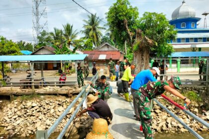 LCN – BARABAI – Semangat kemanunggalan TNI bersama rakyat kembali terlihat dalam proses pembangunan Jembatan Garuda di Desa Paya Besar, Kecamatan Batu Benawa, Kabupaten Hulu Sungai Tengah, Mingg...