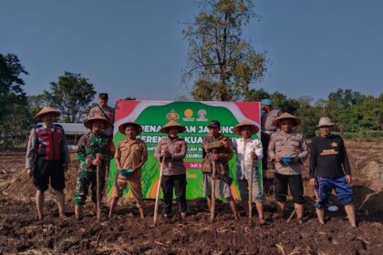 LCN – Pasuruan, Dalam upaya mendukung program ketahanan pangan (Hanpangan) nasional, Serda Arif Sugianto Babinsa Koramil 0819/23 bersama Polsek, Ponpes Nailul Falah dan tokoh masyarakat sebagai ...