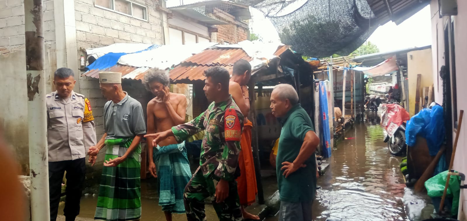 Kehadiran aparat di tengah masyarakat menjadi bukti kepedulian terhadap keselamatan warga. Di tengah genangan air yang merendam permukiman, Babinsa bersama perangkat dusun melakukan pengecekan langsung ke rumah-rumah warga. Selain memantau kondisi lingkungan, mereka juga mendata jumlah rumah yang terdampak guna memastikan langkah penanganan yang tepat.
