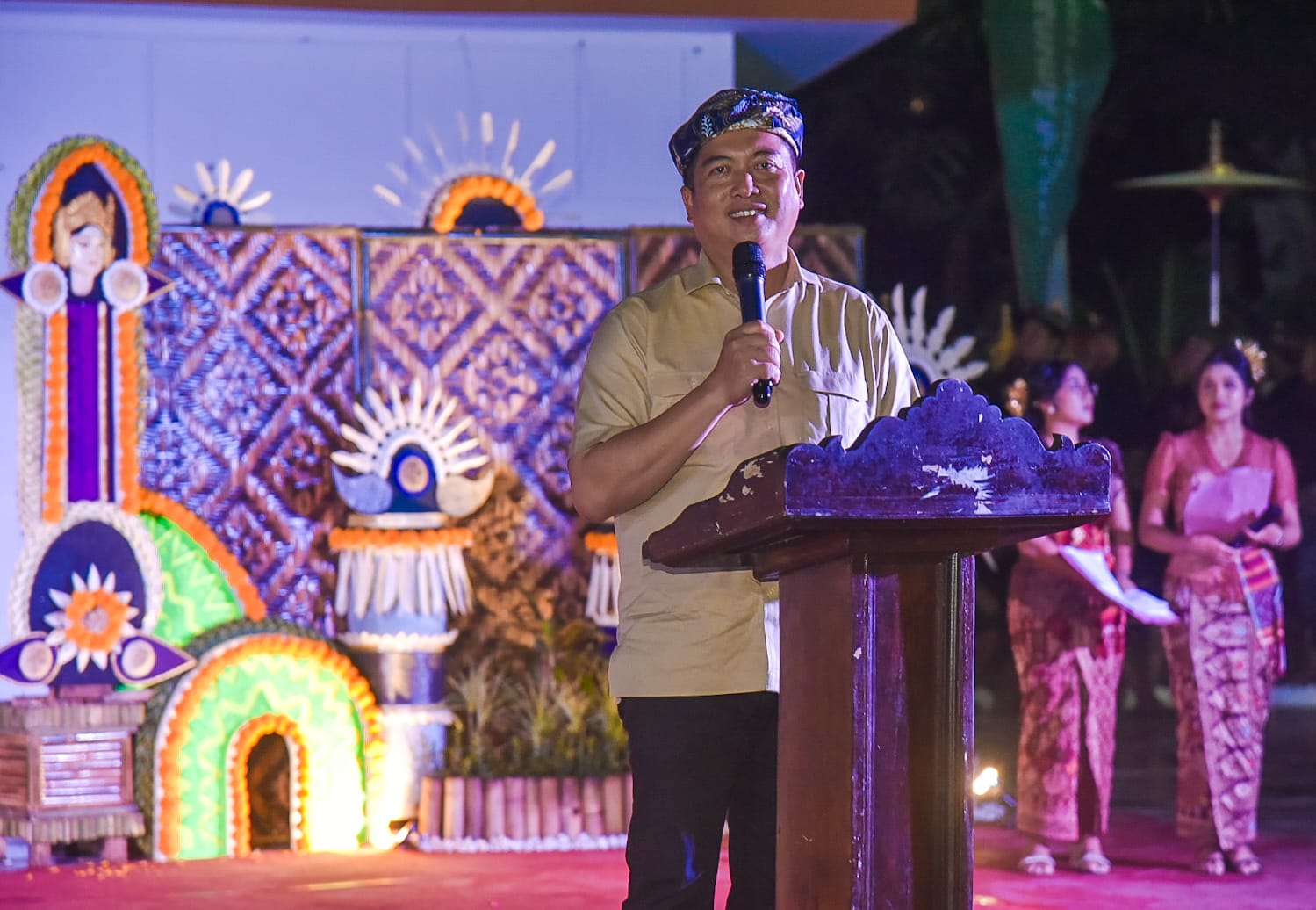 “Saya gembira sekali bisa hadir di tengah teman-teman semua. Kegiatan ini relevan dan bagus, karena bukan hanya menjadi ruang ekspresi bagi pemuda Hindu, tetapi juga bisa dinikmati wisatawan. Ini bukti bahwa di tengah masyarakat muslim, kegiatan umat Hindu tetap mendapatkan ruang,” tuturnya.