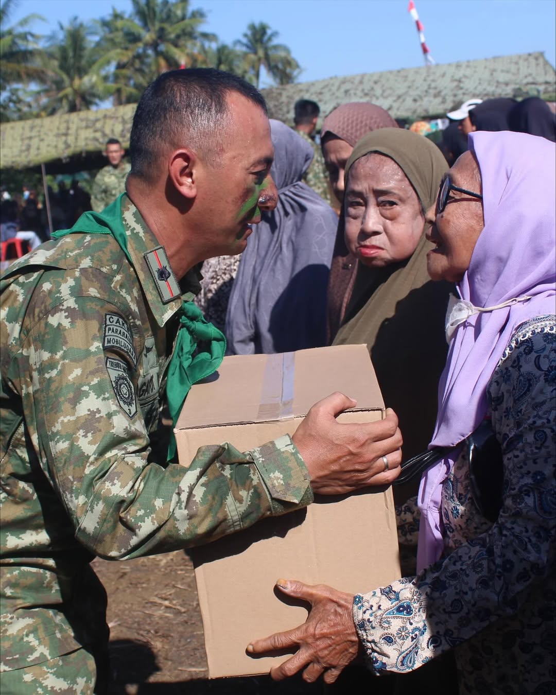 Tidak hanya menampilkan atraksi udara, kegiatan ini juga dirangkaikan dengan bakti sosial berupa pembagian Sembako dan interaksi langsung bersama warga. Kehadiran prajurit Kostrad di tengah masyarakat membawa suasana keakraban yang hangat serta memperlihatkan kepedulian nyata terhadap kebutuhan masyarakat sekitar.