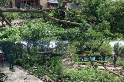 LCN – Lombok Timur – NTB, Babinsa Tembeng Putik Koramil 1615-11/Aikmel, Serda Muhammad Darmawan, pada Jumat, 02 Desember 2025, melaksanakan kegiatan gotong royong bersama warga bertempat di Dusu...