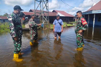 LCN – HULU SUNGAI TENGAH-Koramil 1002-08/Labuan Amas Utara melaksanakan aksi pemantauan banjir yang melanda Desa Sungai Buluh dan Mantaas, Kecamatan Labuan Amas Utara Banua, Kabupaten Hulu Sunga...