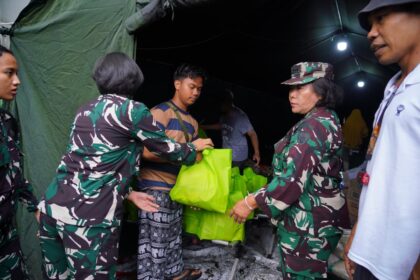 LCN – Denpasar – Korps Wanita Angkatan Darat (Kowad) Kodam IX/Udayana menyalurkan bantuan bagi warga terdampak banjir di Posko Cokroaminoto dan Posko Pengungsi SD 12 Pemecutan, Kota Denpasar, Se...