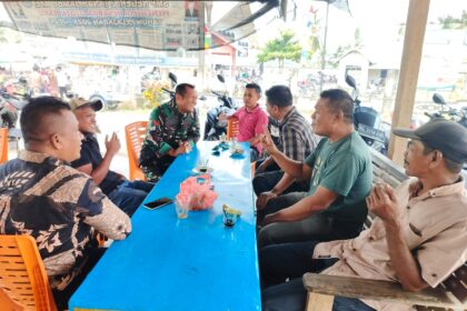 LCN – Aceh Utara – Babinsa Koramil 14/Tanah Jambo Aye, Koptu Mukmin, melaksanakan komunikasi sosial (Komsos) bersama perangkat Desa Ulee Glee, Kecamatan Tanah Jambo Aye, Kabupaten Aceh Uta...