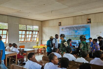 LCN – Iwur – Pegunungan Bintang, Papua. Kepedulian TNI terhadap masa depan generasi muda dan kelompok rentan kembali diwujudkan oleh personel Pos Iwur Satgas Pamtas RI–PNG Yonif 751/Vira Jaya Sa...