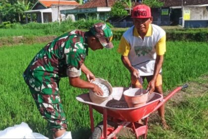 LCN – Blitar – Babinsa Desa Slorok Koramil 0808/02 Garum Serma Sutrisno bersama Kelompok Tani Ngudi Makmur dan Petugas Penyuluh Lapangan (PPL) Ibu Rahmawati SP, melaksanakan kegiatan pemup...