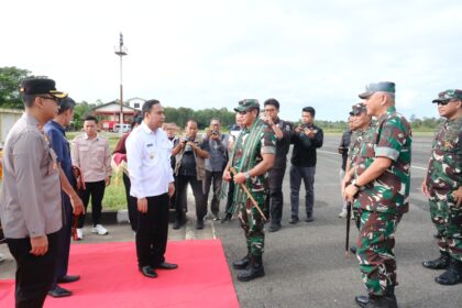 LCN – KUTAI BARAT – Komandan Pusat Kesenjataan Infanteri (Danpussenif) TNI AD Letjen TNI Iwan Setiawan, S.E., M.M. beserta rombongan tiba di Marshaling Area Brigif TP 85/BTC, Kampung Muara Tae, ...