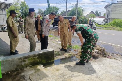 LCN – Lombok Timur, – NTB, Unsur Forkopimcam Wanasaba bersama Danpos dan Babinsa Koramil 1615-11/Aikmel melaksanakan survei lapangan untuk mengidentifikasi titik-titik hambatan aliran air ...