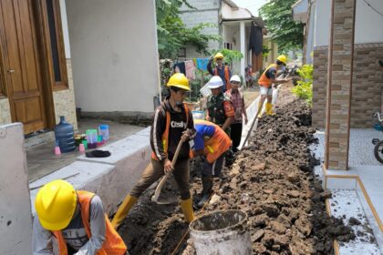 LCN – Pasuruan, – Anggota Koramil 0819/10 Bangil, Sertu Suprianto, Babinsa Kelurahan Kolursari, turut serta dalam kegiatan gotong-royong bersama warga RT 009 RW 002 Lingkungan Kolursari un...