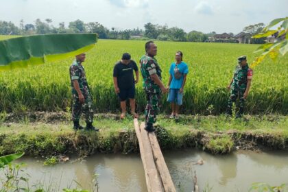 LCN – Sragen, Untuk memastikan kelancaran sistem irigasi dan ketersediaan air bagi tanaman padi, sebagai upaya mendukung program ketahanan pangan nasional, Sertu Suyono Babinsa Desa Kebonromo be...
