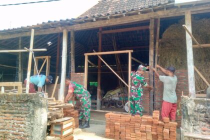 LCN – Srageb, Serma Suripan beserta 1 anggota Babinsa Koramil 15/Gemolong Kodim 0725/Sragen memimpin kegiatan gotong royong merehab rumah Bapak Supriyono, seorang kakek yang tinggal di Dk.Sentul...