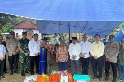 LCN – Kutai Barat – Bupati Kutai Barat, Frederick Edwin bersama rombongan meninjau langsung lokasi rumah warga yang tertimpa musibah kebakaran di Kampung Linggang Mencelew RT.003, Kecamatan Ling...