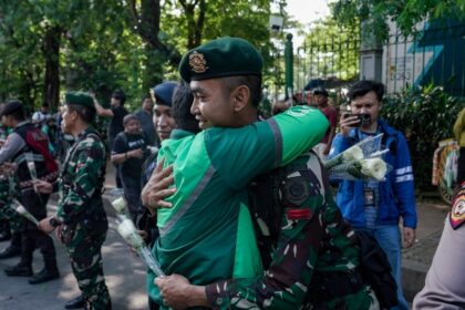 LCN – Jakarta – Komando Strategis Angkatan Darat (Kostrad) menggelar aksi damai didepan Halte IRTI dan kawasan sekitar Monumen Nasional (Monas) bersama petugas Kepolisian dan komunitas oje...