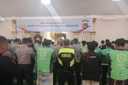 LCN – Mataram – Suasana haru menyelimuti Masjid Baitussalam Polda NTB, Sabtu (30/8/2025) siang, saat ratusan personel Polda NTB yang beragama Islam bersama para pengemudi ojek online (ojol...