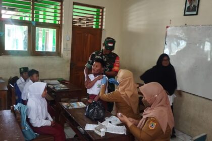 LCN – Boyolali. Dalam rangka mendukung program kesehatan nasional, Babinsa Koramil 14/Klego Kodim 0724/Boyolali, Sertu Supriyato, turut mendampingi pelaksanaan Bulan Imunisasi Anak Sekolah (BIAS...