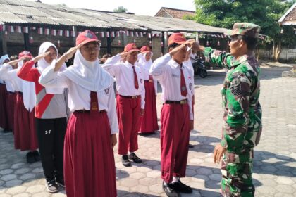 LCN – Blitar, Upaya menanamkan disiplin sejak usia dini diwujudkan melalui pelatihan Peraturan Baris Berbaris (PBB) yang diberikan Babinsa Koramil 0808/10 Kademangan Serma Muarifin kepada siswa-...