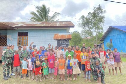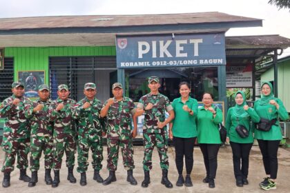 LCN – Mahakam Ulu – Komandan Kodim 0912/Kutai Barat, Letkol Inf Doni Fransisco, bersama Ketua Persit KCK Cabang LXII Dim 0912/Kubar, Ny. Tata Doni, melaksanakan kunjungan kerja ke Koramil 03/Lon...