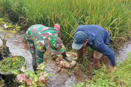 LCN – Blitar – Babinsa Desa Kalimanis Koramil 0808/13 Doko Serda Deni Kurniawan, melaksanakan kegiatan pendampingan program TNI Manunggal Air dengan membantu mengaliri sawah milik warga bi...