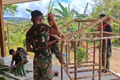 LCN – Kalomdol, Pegunungan Bintang, Pos Selal Satgas Pamtas RI–PNG Yonif 751/Vira Jaya Sakti (VJS) bersama masyarakat Kampung Kalomdol melaksanakan kegiatan pembuatan pondok Natal sebagai bagian...