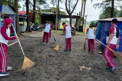 LCN – Mataram – Dalam rangka mendukung program Kabaharkam Polri, Direktorat Polisi Perairan dan Udara (Ditpolairud) Polda Nusa Tenggara Barat, melaksanakan kegiatan bersih-bersih dikawasan Panta...