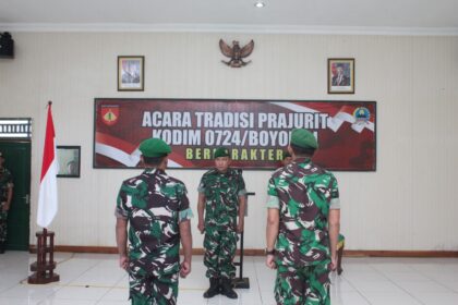 LCN – Boyolali, Kapten Inf Guntur Raharjo memimpin langsung kegiatan Tradisi Korp Raport Pindah Satuan yang berlangsung di Aula Makodim 0724/Boyolali, Jalan Padanaran, Desa Tegalmulyo, Kecamatan...
