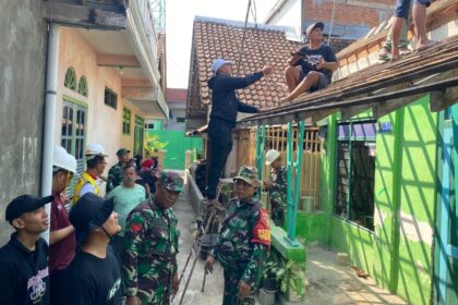 LCN – Blitar – Babinsa Kelurahan Kepanjenkidul Koramil 0808/01 Sukorejo Sertu Didik Subiantoro bersama warga melaksanakan kegiatan gotong royong membantu renovasi rumah milik Bapak Subagio...