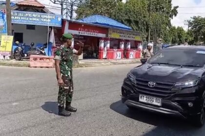 LCN – BARABAI – Personel Kodim 1002/Hulu Sungai Tengah bersama anggota Polres HST serta instansi terkait melaksanakan kegiatan pemantauan dan pengamanan arus lalu lintas para jamaah Pengajian Ru...