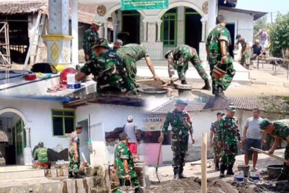 LCN – Batituud Koramil 0819/07 Lekok, Peltu Zainal, memimpin langsung personel melaksanakan kegiatan bakti teritorial berupa perbaikan musholla di Desa Rowogempol, Kecamatan Lekok, Kabupaten Pas...
