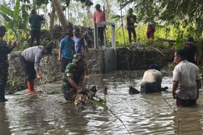 LCN – Lombok Timur, – NTB, Koramil 1615-04/Keruak bersama warga melaksanakan kegiatan gotong royong membersihkan sampah pascahujan yang menumpuk diwilayah Bintang Oros, Desa Selebung, Kec...