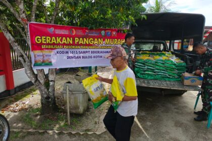 Timcyber——Kotawaringin Timur – Dalam rangka menjaga stabilisasi pasokan dan harga pangan, Kodim 1015/Sampit Bersama Bulog Kabupaten Kotawaringin Timur menggelar kegiatan Gerakan Pangan Murah yan...