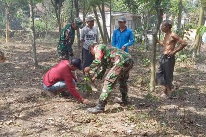 LCN – Blitar – Dalam rangka menjaga kelestarian lingkungan dan menciptakan wilayah yang hijau serta sehat, Babinsa Desa Wonodadi Serda Darmaji bersama warga RT. 02 RW. 01 Dusun Seduri Desa Wonod...