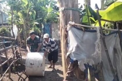 LCN – Pasuruan, – Dalam upaya meningkatkan kualitas kesehatan masyarakat melalui perbaikan sanitasi lingkungan, Sertu Gunawan Koramil 0819/06 Nguling melaksanakan Binter bersama warga mela...