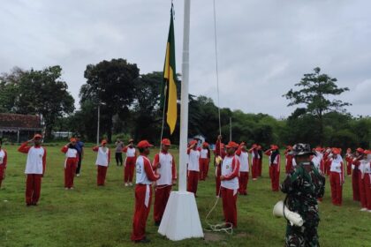 Timcyber——Brebes – Menjelang HUT RI ke 80, Babinsa Koramil 15 Ketanggungan, Kodim 0713/Brebes, Batituud Peltu Watimin Bersama 2 anggota Babinsa melatih Paskibra untuk menyambut peringatan Hari U...