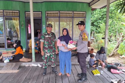 LCN – Kutai Barat – Dalam rangka mendukung program pemerintah untuk menekan angka stunting, Babinsa Koramil 0912-07/Penyinggahan Serka Sabar Iman melaksanakan pendampingan kegiatan pembagian Pem...