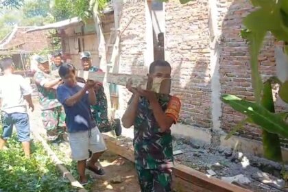 LCN – Sragen, – Serka Slamet Babinsa Desa Brojol Koramil 16/Miri Kodim 0725/Sragen kembali menunjukkan kepedulian terhadap warganya dengan ikut serta dalam kegiatan kerja bakti membantu pe...