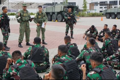 LCN – Singapura – Prajurit Yonif 411 Kostrad diperkenalkan dengan sebuah Alutsista Kendaraan Tempur (Ranpur) Terrex ICV Angkatan Darat Singapura. Sabtu (11/10/2025). Pengenalan Ranpur Terr...