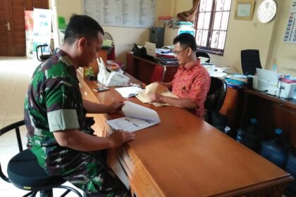 LCN – Surakarta – Babinsa Kelurahan Kepatihan Wetan Koramil 04/Jebres Kodim 0735/ Surakarta, Sertu Budiono mengadakan update data teritorial di Kantor Kelurahan Kepatihan Wetan Jalan, Suta...