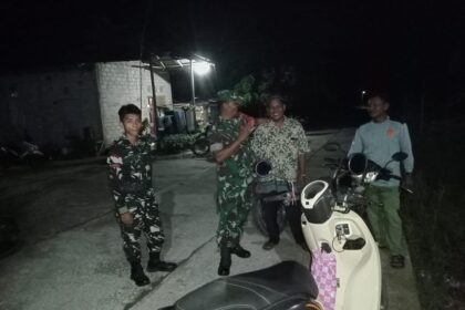 LCN – KUTAI BARAT – Babinsa Koramil 0912-12/Melak, Serka Sunardi, bersama Komponen Pendukung (Komduk) melaksanakan kegiatan patroli wilayah di Kampung Sumber Bangun, Kecamatan Sekolaq Darat, Kam...