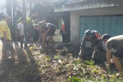 LCN – Pasuruan, – Anggota Koramil 0819/02 Pohjentrek, Babinsa Desa Susukanrejo Serka Haris, bersama warga Dusun Mojosemi RT 01 RW 02 Desa Susukanrejo, Kecamatan Pohjentrek, Kabupaten Pasur...