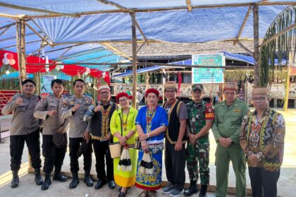 LCN – Mahakam Ulu – Babinsa Koramil 0912-03/Long Bagun Peltu Budi menghadiri kegiatan rangkaian Ritual Adat Hudoq Kawit yang berlangsung di Balai Adat Uma Tu’an, Kampung Ujoh Bilang RT 4, Kecama...