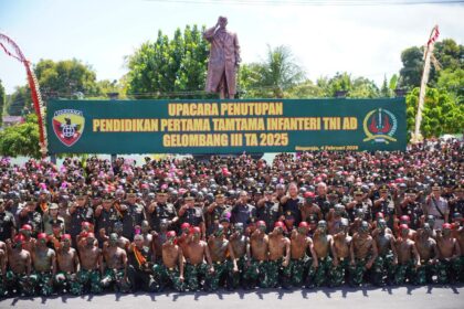 LCN – Buleleng – Kepala Staf Kodam (Kasdam) IX/Udayana Brigjen TNI Taufiq Hanafi secara resmi menutup Pendidikan Pertama Tamtama Infanteri TNI Angkatan Darat Gelombang III Tahun Anggaran 2025, y...
