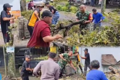 LCN – Pasuruan, – Langkah antisipasi terhadap potensi pohon tumbang akibat hujan lebat dan angin kencang. Sertu Eko Prasetyo Babinsa Kelurahan Pecalukan, anggota Koramil 0819/19 Prigen, me...