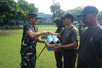LCN – Surakarta – Dandim 0735/Surakarta Letkol Inf Arief Handoko Usman, S.H., membagikan Sepatu Aerobik dan kaos kaki kepada seluruh Anggota baik Militer maupun ASN. Pembagian sepatu aerob...